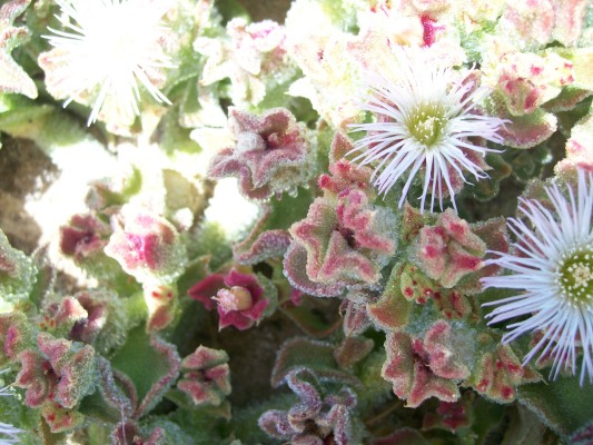 the desierto central in this part of baja norte is the most stunning - huge boulder fields with the legendary boojum (cirio) trees, saguaro-like 60' cardón cactus, elegant elephant trees, muchas variedades chollas, ocotillo etc - the desert was green! in full bloom as we went down - purple and yellow wildflowers everywhere - apparently it rained last year